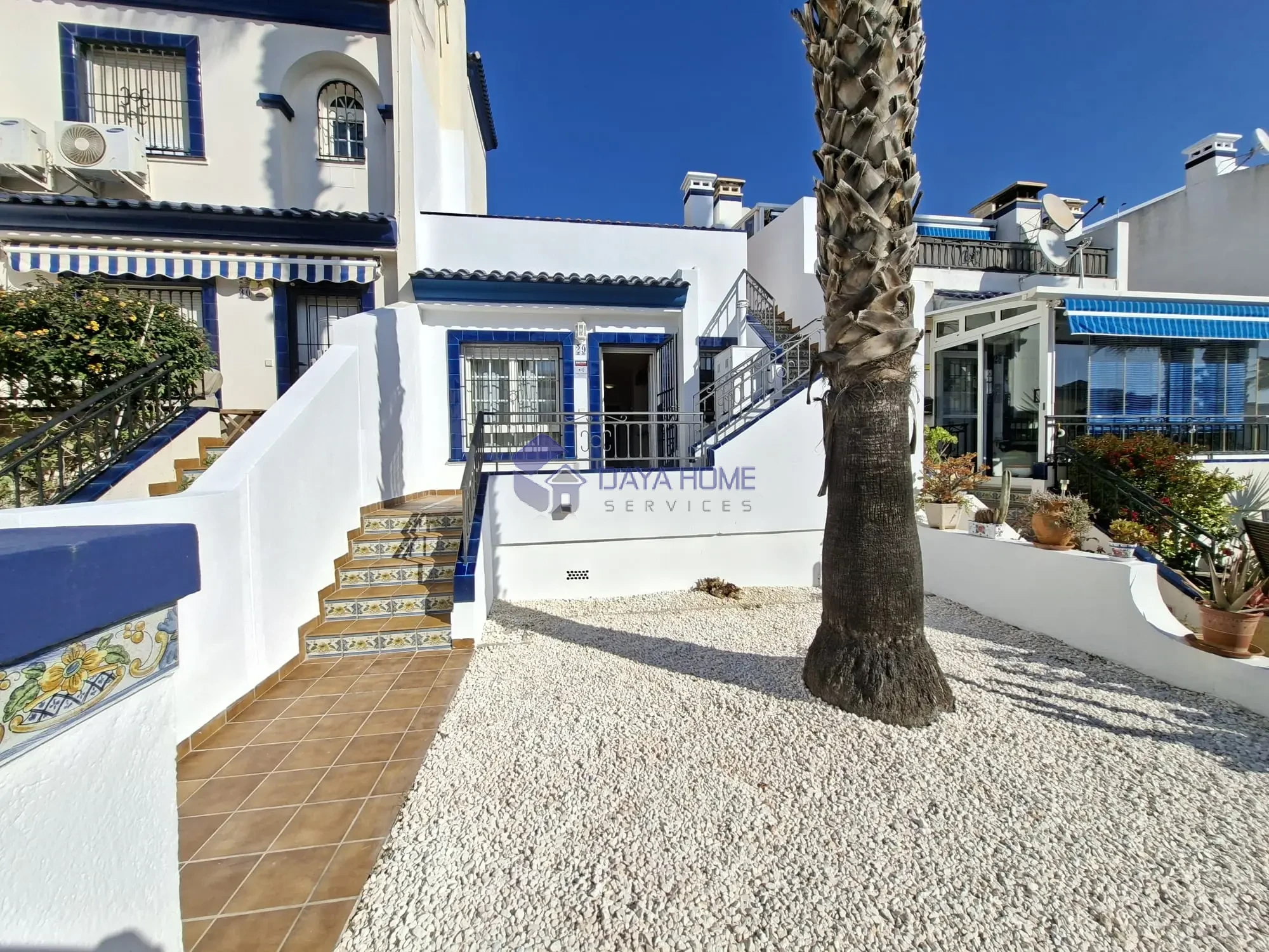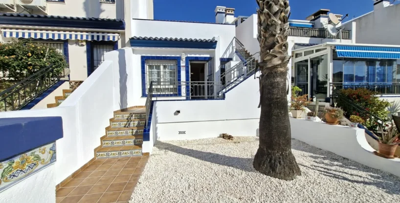 La urbanización ofrece bonitos jardines comunitarios y dos zonas de piscina, una de ellas situada justo frente a la parte trasera de la vivienda, lo que aporta comodidad y vistas despejadas