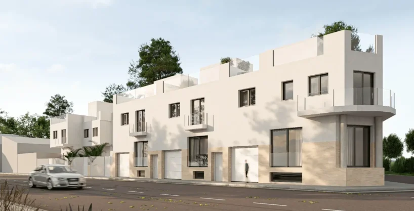 A la venta adosados tipo dúplex, con un diseño moderno y funcional. Cada vivienda cuenta con 3 dormitorios y 3 baños, cocina americana amueblada con vitrocerámica y extractor, patio interior, y garaje privado. Disponen de armarios empotrados y preinstalación de aire acondicionado/calefacción, ofreciendo todo el confort y la comodidad que necesitas.